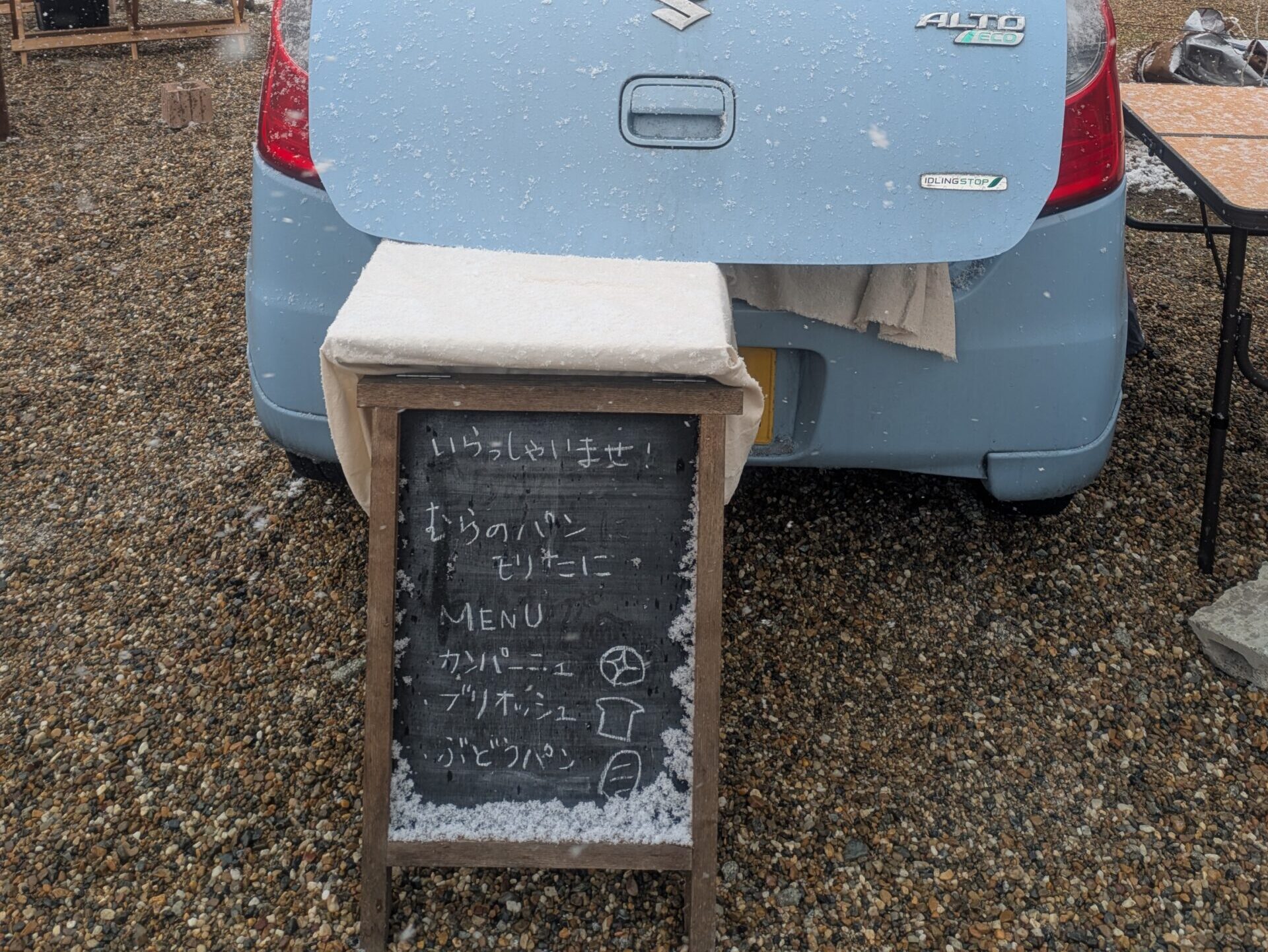 急遽、車の後ろにパンを置いて販売することに🚗