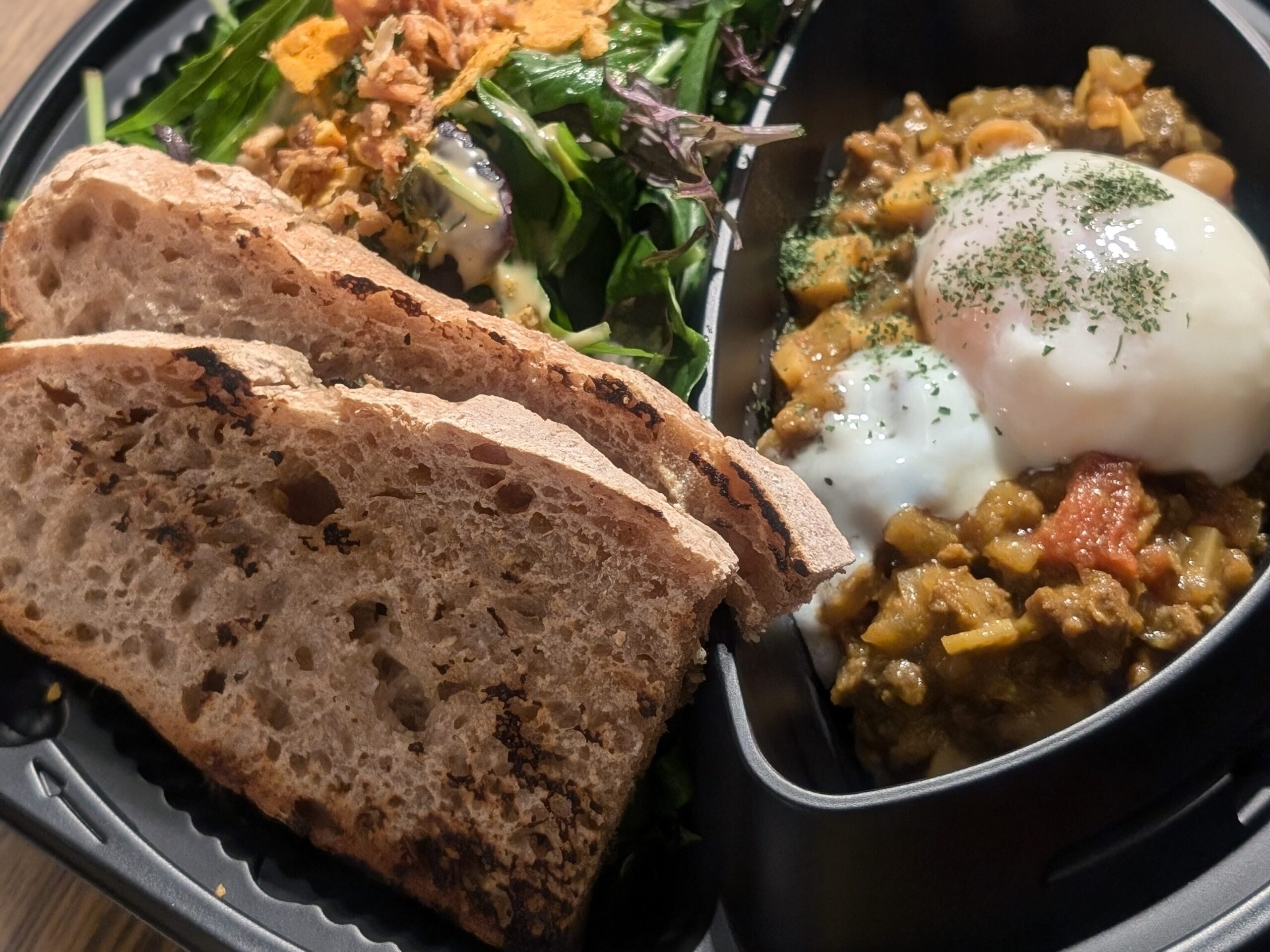 パンを温めてキーマカレーのセッティングをする時間。