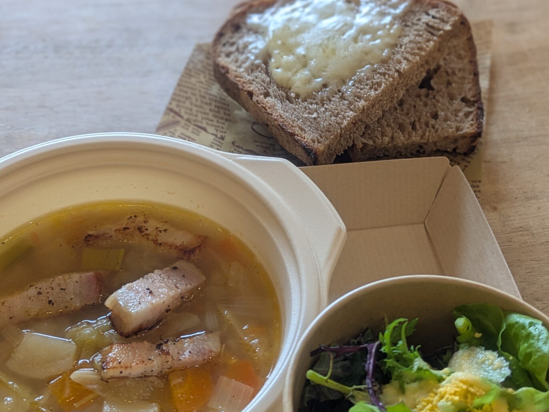チーズをのせたカンパーニュは、そのまま食べたり、スープに浸したり。