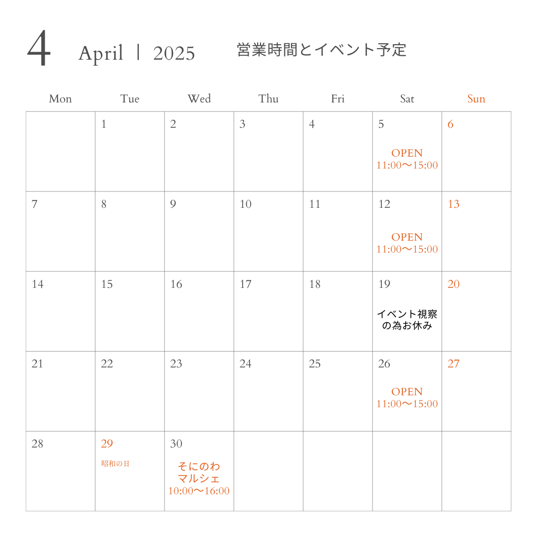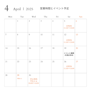 白黒 シンプル 2025年 4月 5月 6月 カレンダー お知らせ 店舗 インスタグラム投稿 (2)