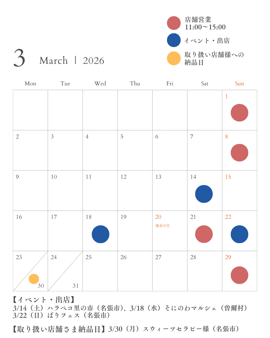 お店のお知らせ