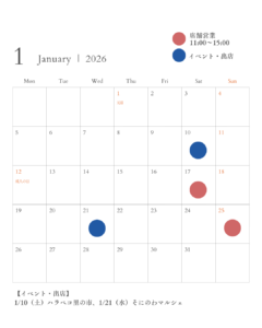 白 シンプル 2026年1~12月 カレンダー 月曜始まり お知らせ インスタグラム投稿 縦長 (2)